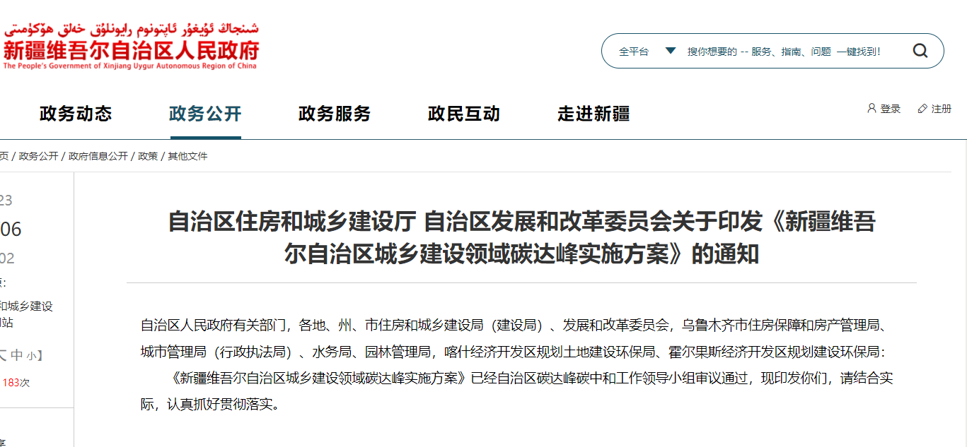 推動(dòng)城鄉(xiāng)建設(shè)綠色低碳轉(zhuǎn)型 新疆自治區(qū)發(fā)布城鄉(xiāng)建設(shè)領(lǐng)域碳達(dá)峰實(shí)施方案