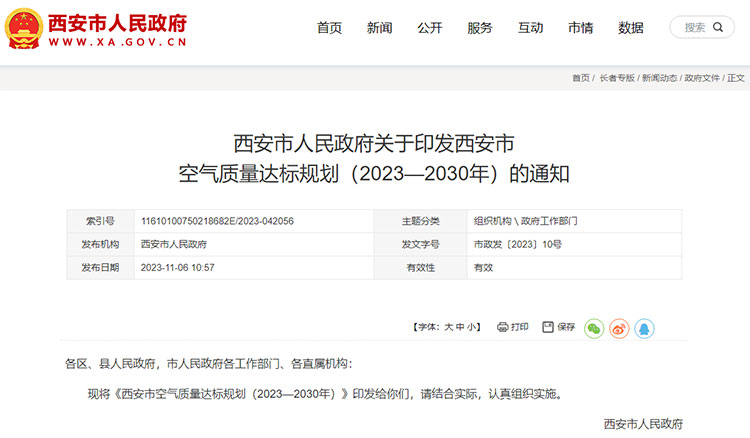 深入推進(jìn)環(huán)境污染防治 西安市發(fā)布2023-2030年空氣質(zhì)量達(dá)標(biāo)規(guī)劃