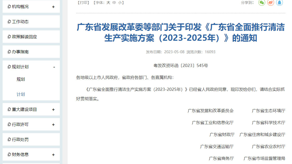 為進(jìn)一步貫徹落實(shí)節(jié)約資源和保護(hù)環(huán)境基本國(guó)策,持續(xù)推進(jìn)生態(tài)文明建設(shè)、推動(dòng)減污降碳協(xié)同增效,加快形成綠色生產(chǎn)生活方式、促進(jìn)經(jīng)濟(jì)社會(huì)全面綠色轉(zhuǎn)型和高質(zhì)量發(fā)展,廣東省發(fā)展改革委等部門日前發(fā)布《廣東省全面推行清潔生產(chǎn)實(shí)施方案(2023-2...
