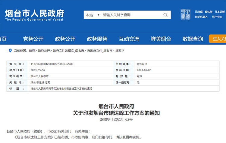 推動智能低碳城市建設(shè) 山東煙臺發(fā)布《煙臺市碳達(dá)峰工作方案》