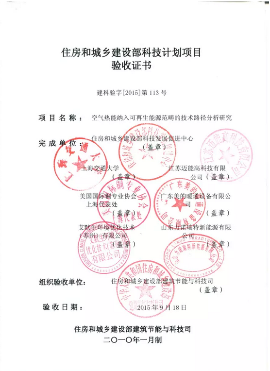近日,由住房和城鄉(xiāng)建設(shè)部科技發(fā)展促進(jìn)中心帶頭,上海交通大學(xué)、江蘇邁能高科技有限公司、美國國際銅專業(yè)協(xié)會上海代表處等單位共同完成“空氣能納入可再生能源范疇的技術(shù)路徑分析研究”項目通過住房和城鄉(xiāng)建設(shè)部建筑節(jié)能與科技司的驗收。 ...