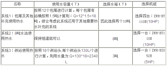 系統(tǒng)3:主機臺數(shù)=3噸/0.41×10小時=0.73臺,因此選擇1臺ZWH-BT052E(5HP);