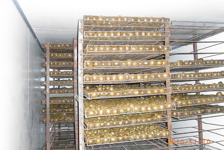 廠家原來大多采用柴火烘干窯,烘干時間較長,大火需要6~8天,小火則需10天左右,柴火烘干成本(含人工成本)約為5~6分錢一個果。