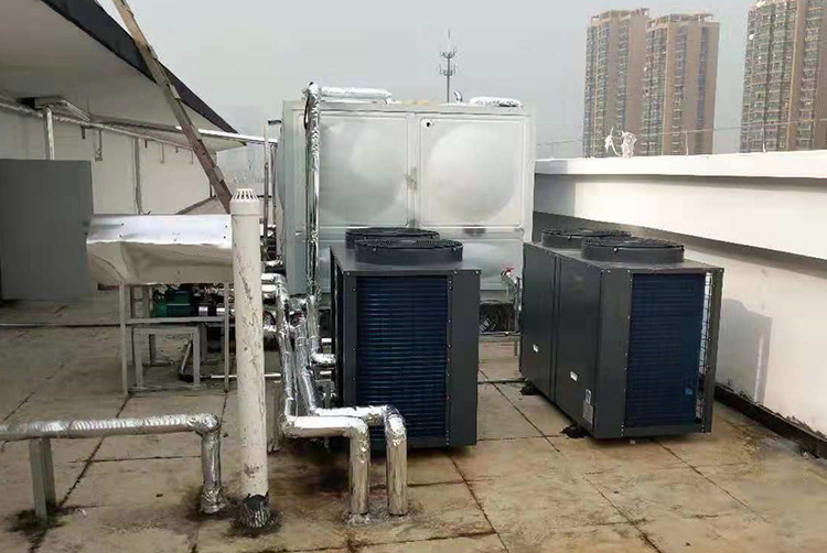 以江蘇宿遷某中學為例,本項目是校區宿舍熱水項目,按學校要求,每一個宿舍都要滿足充足的熱水供應。經過前期的考察,正旭熱泵為該校宿舍樓配置了4臺10P超低溫空氣源熱泵熱水機組,能夠輕松滿足學生每日正常用水量。