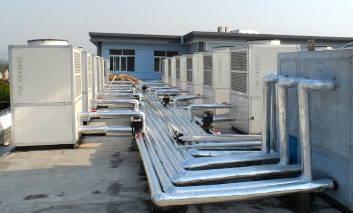 以正旭在長春某大學熱水項目為例,長春冬季氣溫極低,熱水機組很容易結霜,清理不及時就會影響師生生活用水,所以需要提供一款在冬季能夠穩定運行且除霜速度快的機組。為此,經過正旭團隊多次實地考察,最終決定投入4臺超低溫空氣源熱水機組。為該大學提供