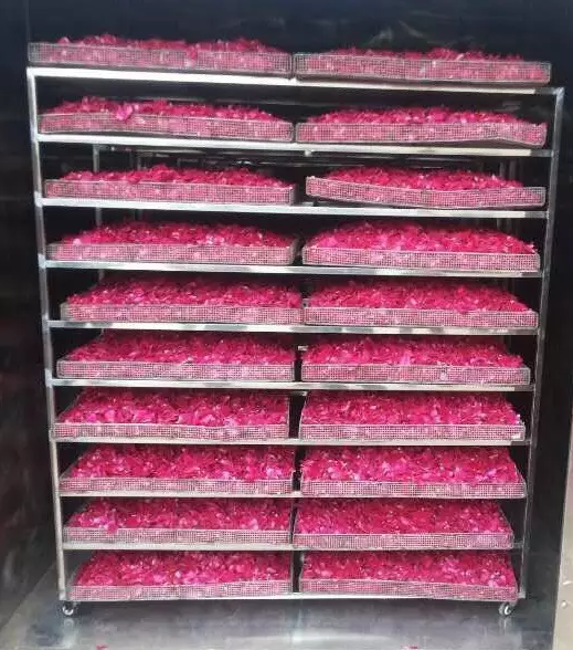 1、低溫除濕烘干,不破壞玫瑰花營養成分,可回收玫瑰花精油;
