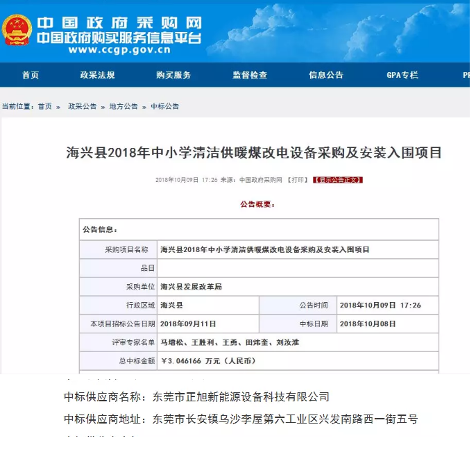 近日,中國(guó)政府采購(gòu)網(wǎng)正式公布海興縣2018年中小學(xué)清潔供暖煤改電設(shè)備采購(gòu)及安裝入圍項(xiàng)目中標(biāo)公告,2018河北空氣源熱泵取暖行業(yè)標(biāo)志性品牌——正旭空氣能以強(qiáng)大的品牌實(shí)力、性價(jià)比及技術(shù)優(yōu)勢(shì)等方面,進(jìn)行層層篩選和綜合考慮后,強(qiáng)勢(shì)入圍七標(biāo)段熱泵(空氣源)。