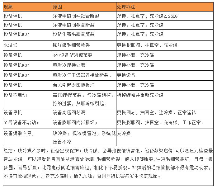 排除:安裝時(shí)水箱換熱器的空氣未排盡,就啟動(dòng)運(yùn)行,充注同型號(hào)冷媒,必須抽真空后再進(jìn)行充注操作。