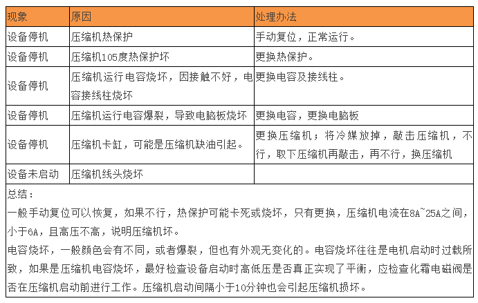 3.1 熱保護(hù)器不正常;可查閱壓縮機(jī)廠商提供的規(guī)格書關(guān)于此項(xiàng)的性能圖和文字說明。