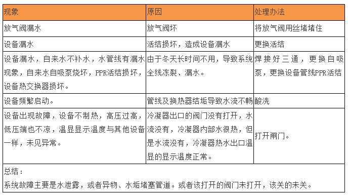 一、空氣能熱泵故障分析與排解