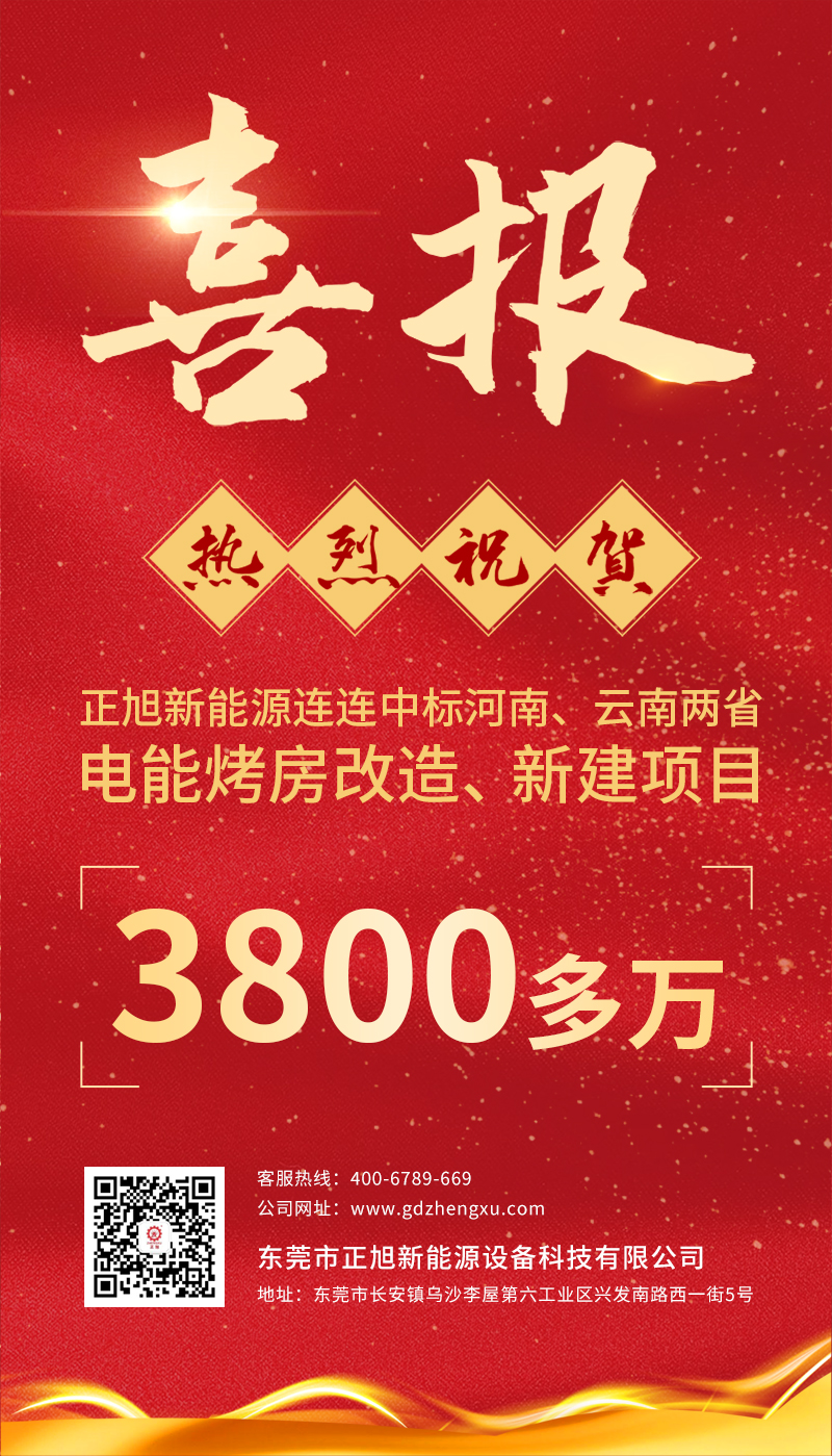 喜報!熱烈祝賀正旭新能源連連中標河南、云南兩省電能烤房改造、新建項目3800多萬