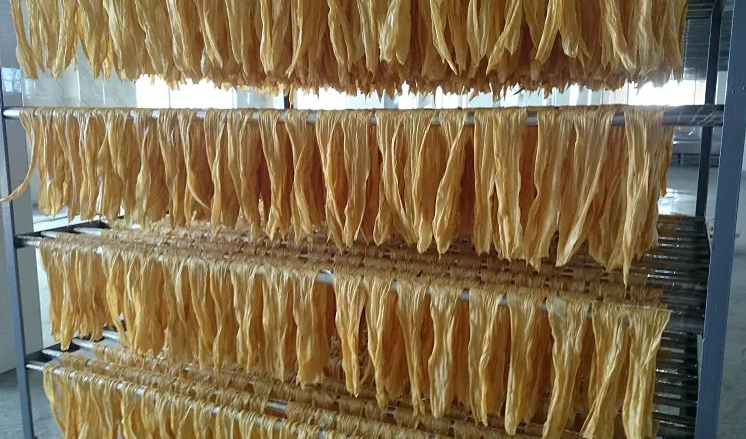 2. 此階段將腐竹放入烘干房,繼續以60攝氏度烘干兩小時,等待水分降至15%-20%;