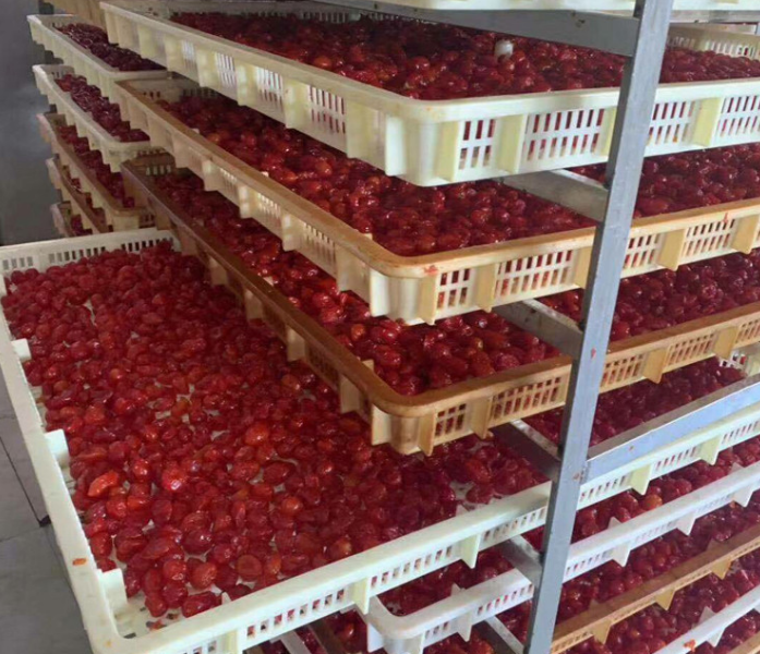 1. 采用多溫區分層控溫,速度可調、自動控制,烘制出的圣女果顏色鮮亮,果形圓潤,收縮均勻,含糖量適中,易于咀嚼;