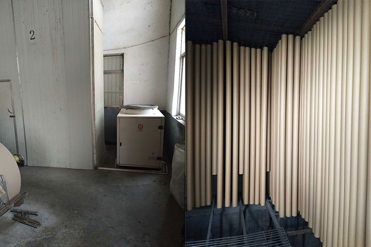 以正旭在浙江富陽的紙管烘干項目為例,正旭團隊接手項目之后,進行多次實地考察,進行相關需求量計算之后,最終為該紙管廠配備了8臺10P分體熱泵烘干機,滿足紙管烘干需求。安裝這些分體烘干機之后,在測試階段發現,烘干機每天工作10小時,用電量為90度電,每批次烘干數量巨大,比傳統的電加熱烤房可以節省將近一大半的電費。
