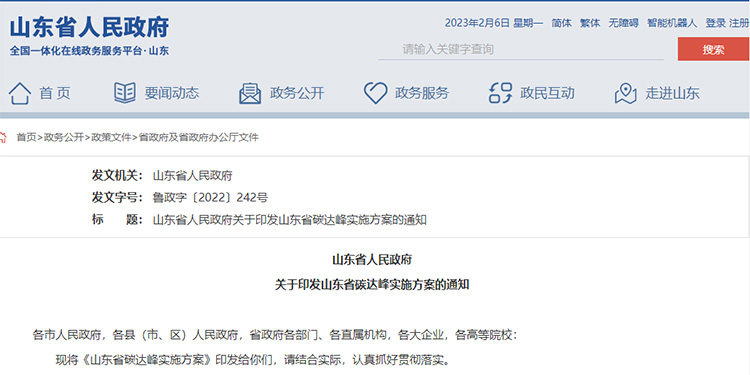 近日,山東省人民政府發(fā)布《山東省人民政府關于印發(fā)山東省碳達峰實施方案的通知》,為了深入貫徹我國關于碳達峰碳中和重大戰(zhàn)略決策部署,有力有序有效做好碳達峰工作,深入貫徹我國生態(tài)文明思想,立足新發(fā)展階段,完整、準確、全面貫徹新發(fā)展理念,山東省主動服務和融入新發(fā)展格局,深化新舊動能轉(zhuǎn)換,努力建設綠色低碳高質(zhì)量發(fā)展先行區(qū),推動經(jīng)濟體系、產(chǎn)業(yè)體系、能源體系和生活方式綠色低碳轉(zhuǎn)型。