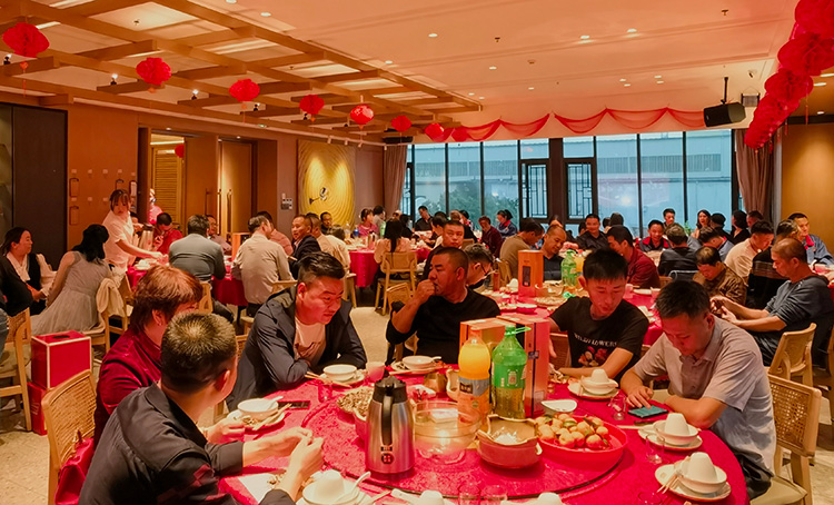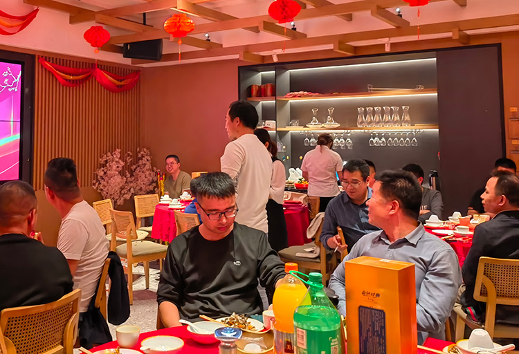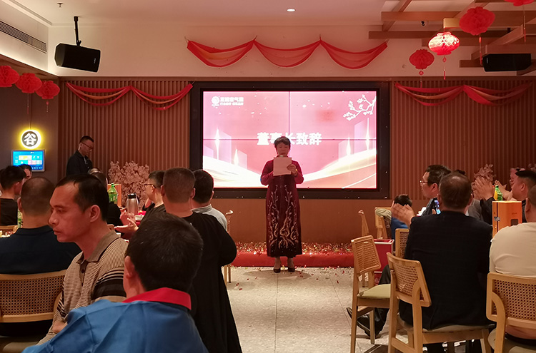 陳董的發言高屋建瓴、鼓舞人心,讓大家激情滿懷、對公司在新一年的發展充滿信心。接著,公司總經理陳寶天先生和副總經理陳祥全先生分別致祝酒辭,并宣布晚宴開始。