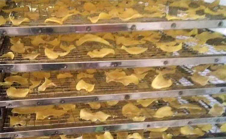 土豆容易氧化,如果采用太陽晾曬,極易氧化,導致干燥的土豆片外觀質(zhì)量欠缺,不滿足市場對土豆片的高品質(zhì)要求。再加上露天晾曬,干燥效率低,受天氣影響大,并且容易遭受灰塵污染以及蠅蟲叮咬,難以保證食品安全。