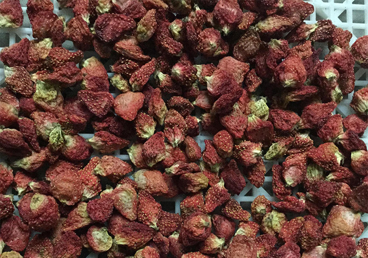 1. 采用多溫區(qū)分層控溫,速度可調、自動控制,烘制出的草莓果干顏色為絳紅色,大小均勻,外形完整,具有草莓鮮果的芳香,口味酸甜,口感香脆;