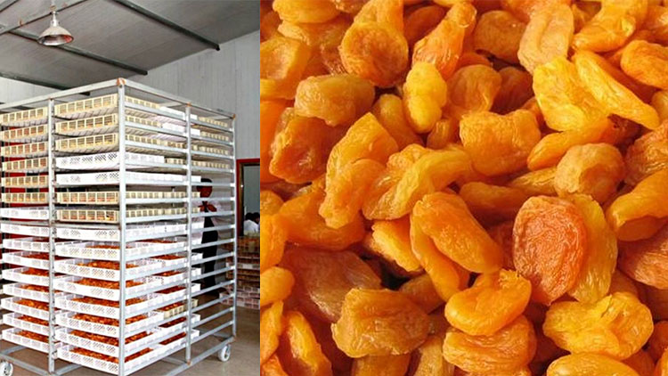 8. 烘干完成的杏子含水量應保持在16%-18%之間,成品放在木箱中回軟3-4小時,按照品質、大小不同分門別類進行包裝。