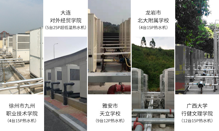 以正旭在廣西電力職業(yè)技術(shù)學(xué)校的熱水改造項(xiàng)目為例, 2013年7月正旭幫助廣西電力職業(yè)技術(shù)學(xué)校順利完成280T熱水工程改造項(xiàng)目,近十年來一直穩(wěn)定運(yùn)行,讓近萬名教職工與學(xué)生享受更快捷周到的熱水服務(wù),同時(shí)大大降低運(yùn)營(yíng)成本及能源損耗,有效提升學(xué)校后勤保障能力。目前,正旭已成功為包括徐州九州職業(yè)技術(shù)學(xué)院、廣西師范學(xué)院、大連對(duì)外經(jīng)貿(mào)學(xué)院、四川省內(nèi)江師范學(xué)院、北大附屬學(xué)校、長(zhǎng)春中醫(yī)藥大學(xué)、蘭州理工大學(xué)等提供空氣源熱泵熱水工程服務(wù),贏得了學(xué)校師生的積極評(píng)價(jià)。