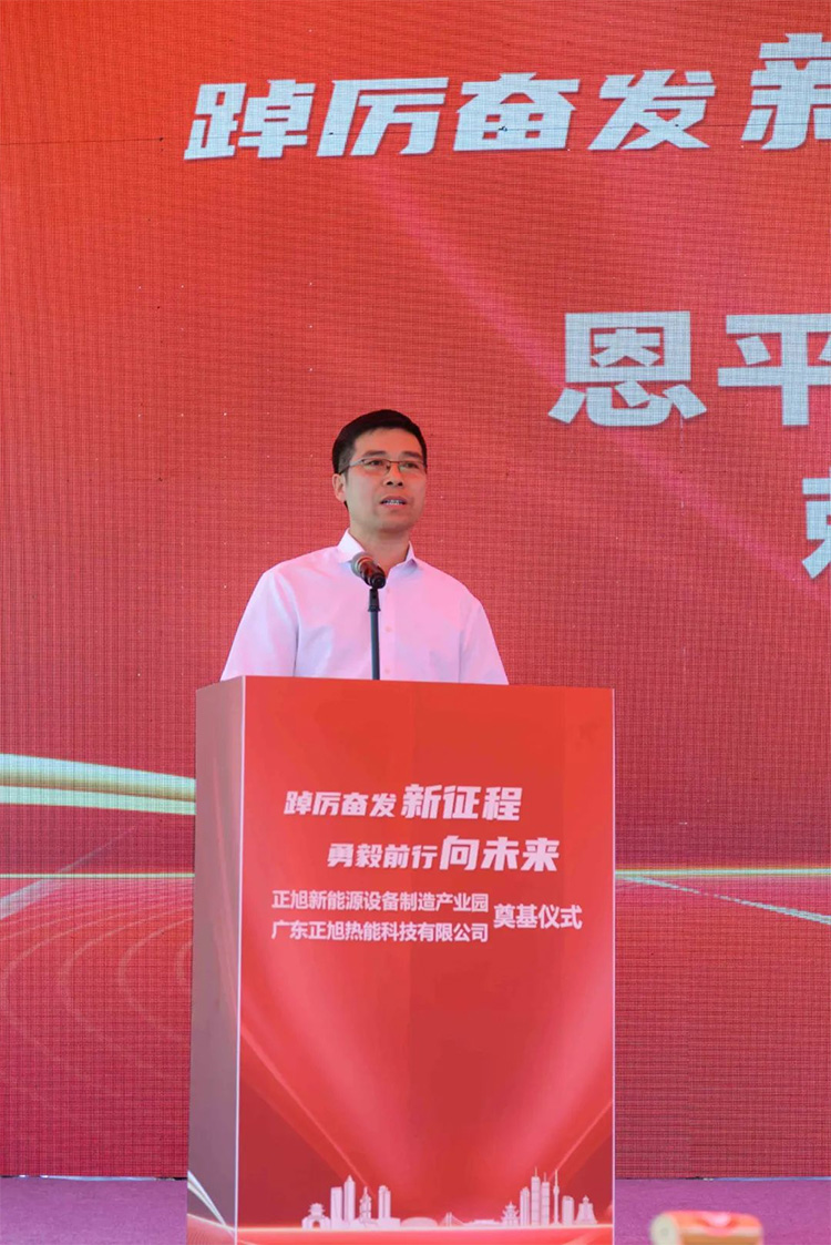 奠基儀式上,正旭董事長陳帥榮發(fā)表了熱情洋溢的講話,對(duì)關(guān)心和支持正旭集團(tuán)發(fā)展和成長的各級(jí)各部門表示最衷心的感謝,并表達(dá)了對(duì)未來發(fā)展的期許。陳帥榮表示,選擇恩平,恰逢其時(shí);投資恩平,大有可為;牽手恩平,潛力無限。正旭集團(tuán)將全力加快項(xiàng)目建設(shè),高標(biāo)準(zhǔn)、高質(zhì)量做好工程建設(shè)各項(xiàng)工作,努力將本項(xiàng)目打造成恩平標(biāo)桿工程。