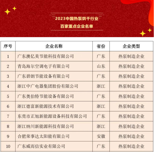 會上,由中國節能協會熱泵專業委員會支持、《熱泵》雜志承辦“2023中國熱泵烘干行業百家重點企業推選活動”,來自權威科研院所、知名院校、檢測認證機構、標準制定組織、行業協會等部門的專家組成評審組評審,對外發布了《2023中國熱泵烘干行業百家重點企業》榜單。60家熱泵制造廠家、23家烘干系統集成商、17家配件配套企業上榜,正旭空氣能榜上有名。《2023中國熱泵烘干行業百家重點企業》榜單的發布,將為廣大烘干品牌商與用戶之間搭建溝通橋梁,塑造烘干產業企業新形象,構建熱泵烘干品牌新秩序。