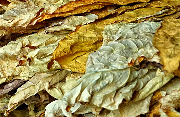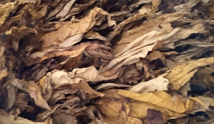 1、采收的煙葉成熟過(guò)度,形成田間鮮煙掛灰,且上部葉采收時(shí)葉數(shù)少。煙葉成熟過(guò)度,水分含量少,進(jìn)入烘房烤制時(shí)會(huì)提前脫水而出現(xiàn)干葉被再烘干的情況,最后就導(dǎo)致煙葉呈現(xiàn)灰色狀。