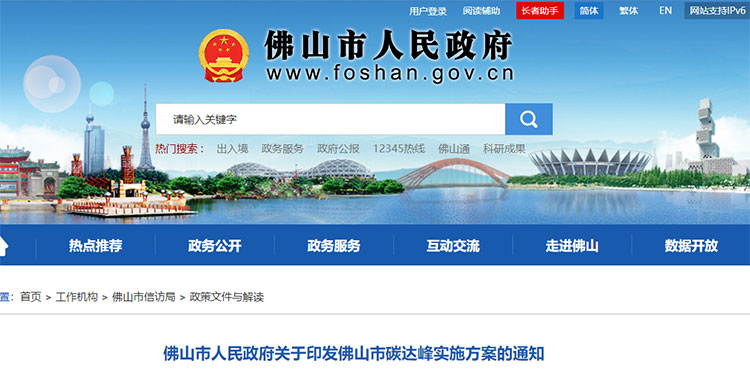 有序推進碳達峰工作 佛山市發布碳達峰實施方案
