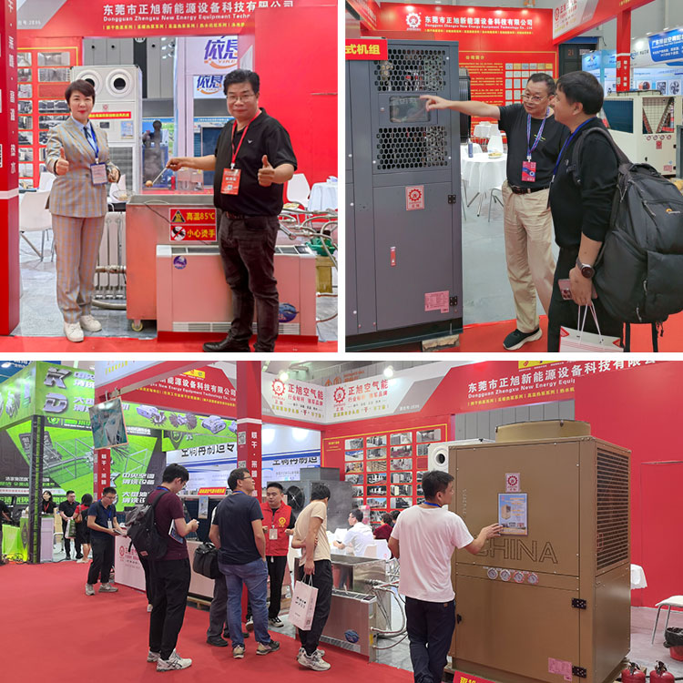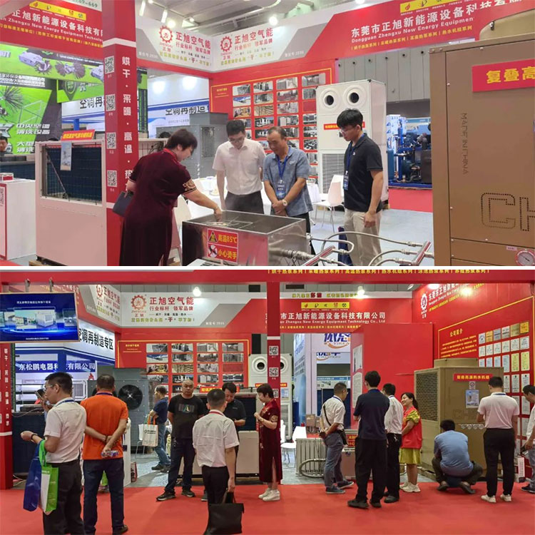 正旭通過開放式的展位形式,把富有吸引力的復疊高溫熱水機組,巧妙生動的展示在參觀者的眼前,全方位呈現了正旭熱泵產品的性能以及工藝,現場參觀客商云集,比肩繼踵,人氣爆棚!