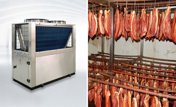 食品加工廠則多采用電熱烘干或燃煤熱風(fēng)爐進行烘烤。電熱烘干能耗高,對于像臘腸、臘肉等需要長時間干燥的臘味制品來說,烘干成本不劃算;熱風(fēng)爐熱損大,同時烘干過程中對于臘味的二次污染非常嚴重,許多地方的食監(jiān)及環(huán)保部門已經(jīng)嚴令禁止使用。在此背景下,空氣源熱泵烘干作為一種溫和、接近自然的干燥方式,不斷受到市場的青睞。