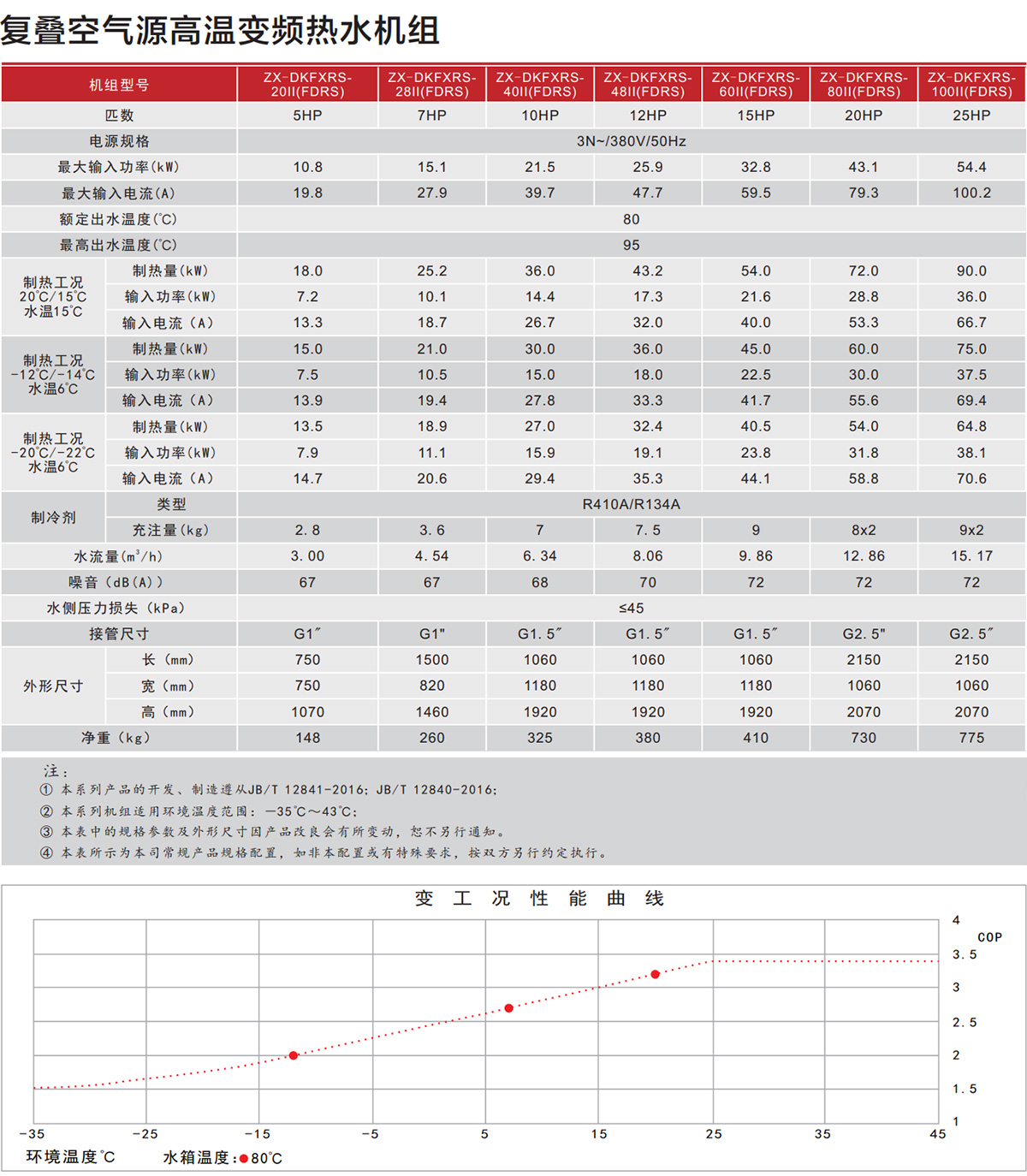 正旭噴氣增焓低溫型熱泵機組采用噴氣增焓技術,是正旭技術研發中心的重點技術之一,該技術的運用在低溫環境中比同類產品能效高30%以上,復疊空氣源機組可在零下35℃強勁制熱,是北方寒冷地區熱水需求首選。