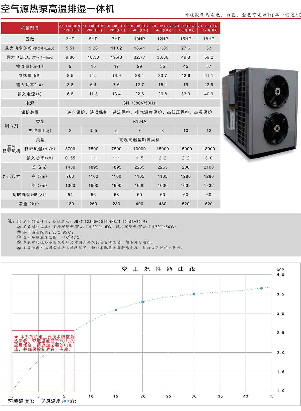 ●在能耗方面:機組的能耗僅為電阻加熱烘干的1/3-1/4左右,因為它在工作過程中利用了空氣中的能量,而不是純粹消耗電能。